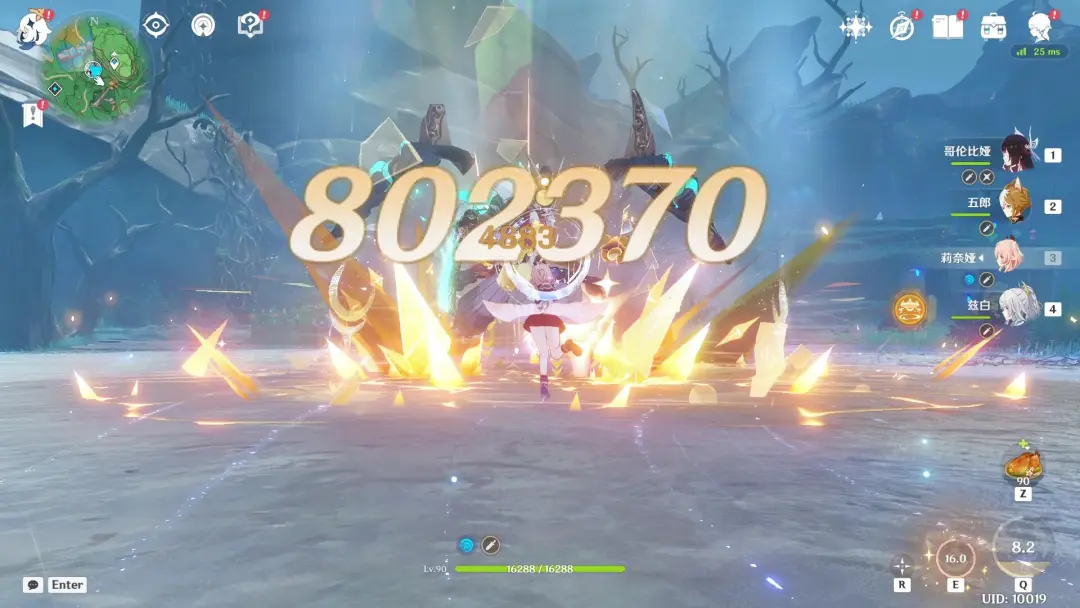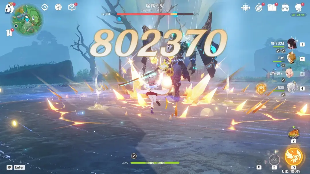 在此配置下,莉奈娅通过特定手法操作,其召唤物「露米」的单次攻击造成了802,370点岩元素伤害。