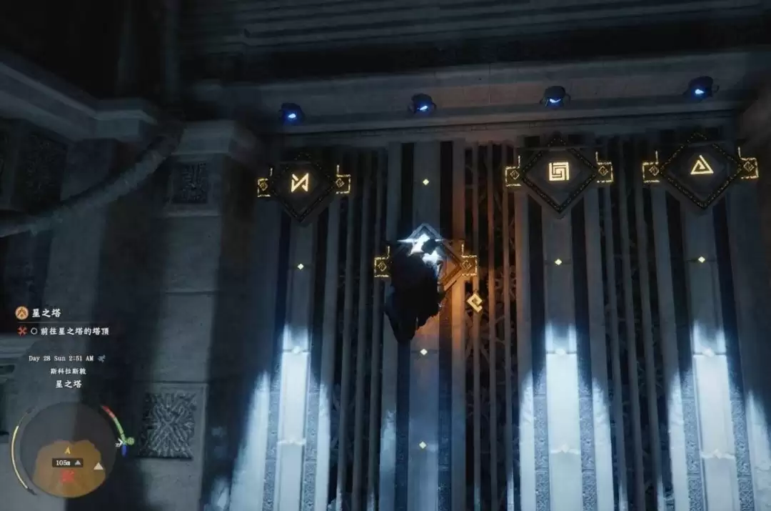 进入大厅后,不要立即使用中央电梯。抵达塔顶前需先完成一个印记解谜。