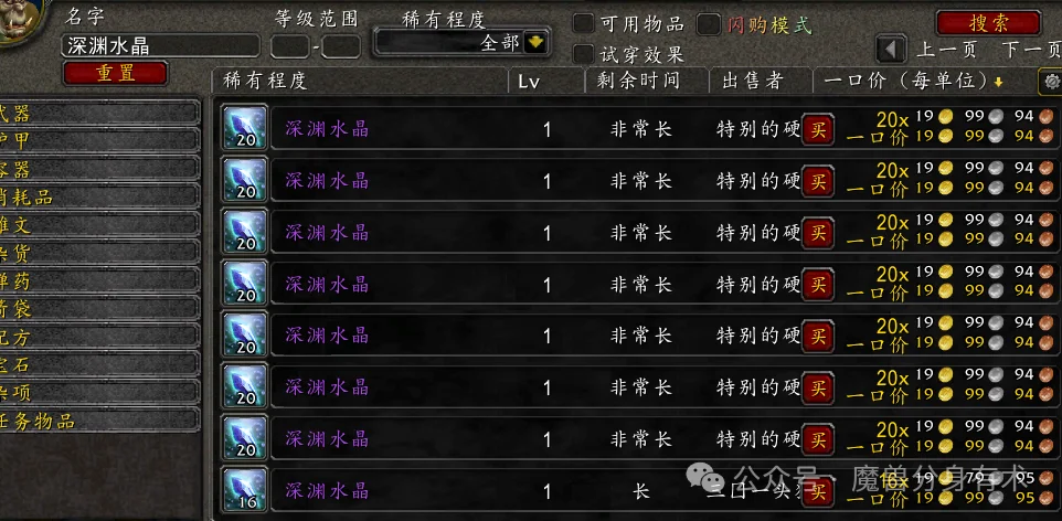 成本控制的核心在于当前材料市场的价差。一个深渊水晶的拍卖行价格稳定在20金区间。如果你的角色学习了附魔专业,整个流程就构成了一个完美的价值循环。