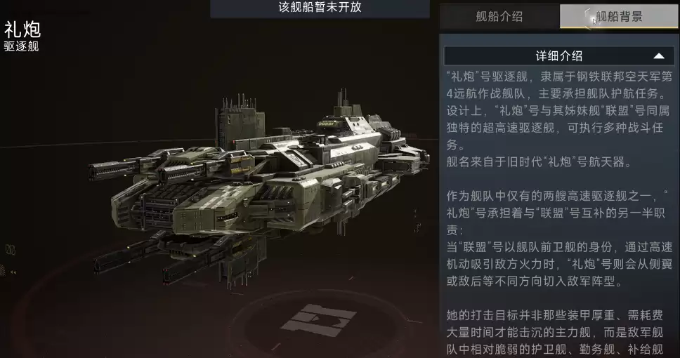 在实战编队布置上,礼炮的理想站位是舰队中列。这一部署的战术优势在于:既能确保其主炮射程有效覆盖敌舰前中排目标,又便于后方支援舰艇(如护卫舰)为其稳定提供护盾修复与能量输送。如此,便构建了一个输出稳定、可持续作战的攻防闭环。