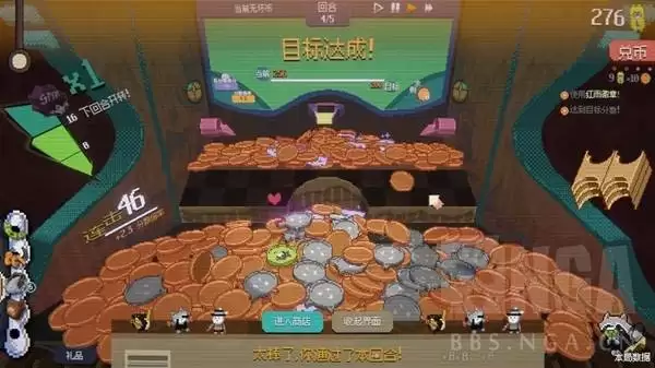 首先是经济模型:你无需节省“推币”次数来获取收入,每回合资金完全取决于实际推落台的代币。首回合若局势不稳,可利用失败赠送的额外摇动机会直接清台,以早期资金优势滚起雪球。