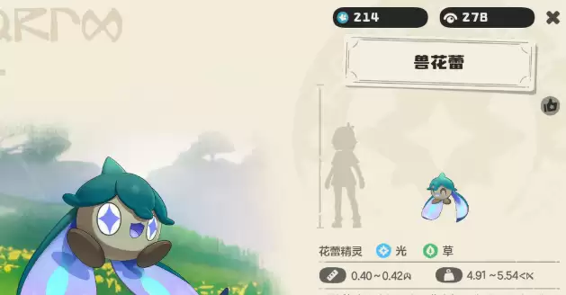 从外观设计看,兽花蕾通体覆盖柔润花瓣,背部延伸出类似苞片的翼状结构,兼具防风防水功能,并支撑其轻盈悬浮与随风移动的特性。圆润豆丁造型强化了亲和力,而双属性组合则赋予其战术多样性。基础能力方面,初始生命值达100点,速度高达120点,使其在先手压制与机动拉扯中占据天然优势;但物攻与魔攻初始仅为20点,需依赖技能协同弥补输出维度短板。