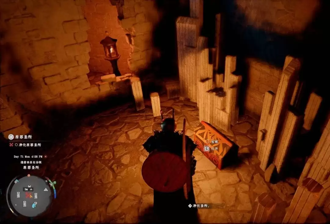最后,通过灯笼旁的缺口进入房间,开启宝箱即可获得赤针。
