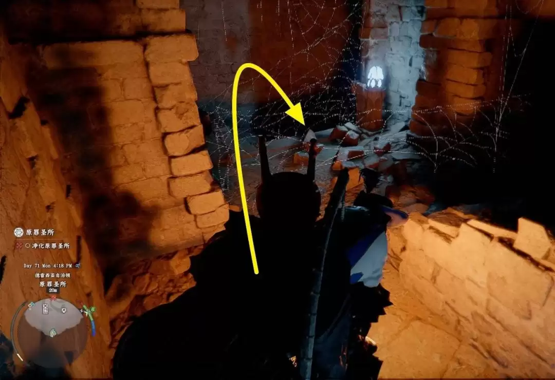 通道尽头会出现两扇门。注意选择左侧那扇布满蛛网的门进入,并沿内部楼梯向下层移动。
