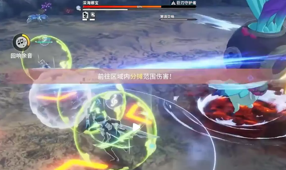打了一段时间后,深海娜宝会点名全队,然后玩家周围会生成水泡,接着放出大范围的全屏攻击。这里的处理方法并不复杂,关键是要进到和自己头顶音符相同的水泡里。只要进对了,就能安全躲过这波伤害。要是站错泡泡,或者反应慢没进去,吃到的伤害会很高。这一段看起来不难,但实战里很容易慌,所以在点名出现时,先确认自己是什么标记,再马上找对应水泡,效率会高很多。