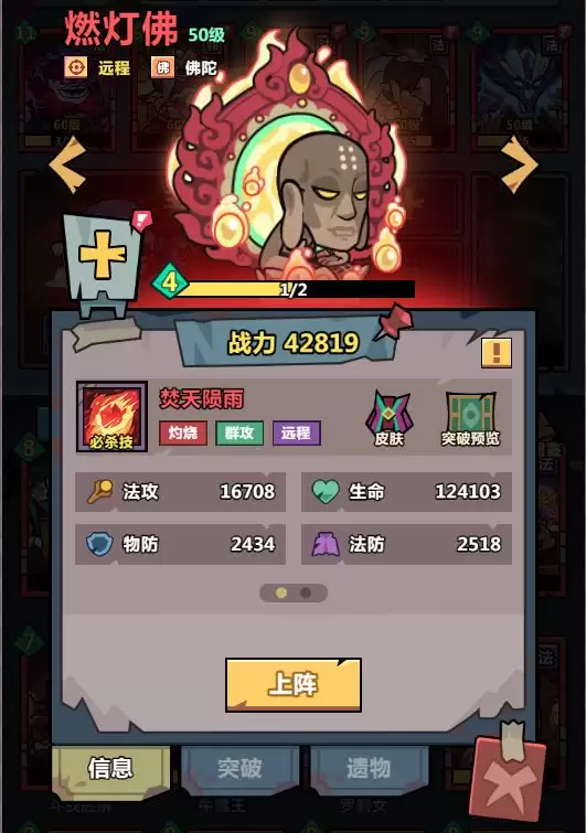 具有暴击的远程法术型神将,可以高效率的给队友回复怒气,必杀技圣莲绽放对最近的敌人造成120%攻击力的中范围伤害并使我方神将在8秒内暴击+30%。观音9阶效果可以回复怒气,更快触发大招,而且观音自带增加暴击BUFF,对与阵容的伤害频率与稳定会有较大帮助