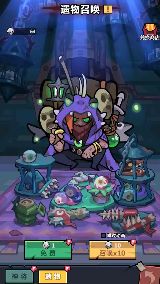 遗物召唤(第二天开启,材料遗物水晶通过商城购买获得,遗物收集可以解锁套装效果,为神将增益额外加成)