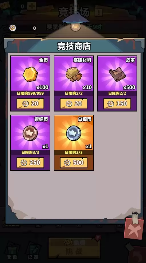 竞技场:通过挑战对手获得竞技硬币,兑换相应的材料奖励