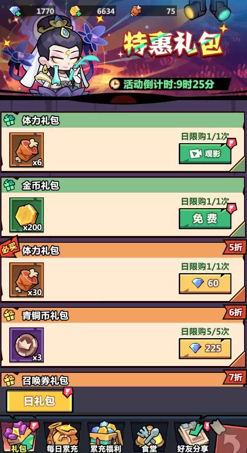 月召唤券礼包,750钻10抽 / 6480钻石70抽,性价比极高(可以攒攒钻石,优先买这两个礼包)