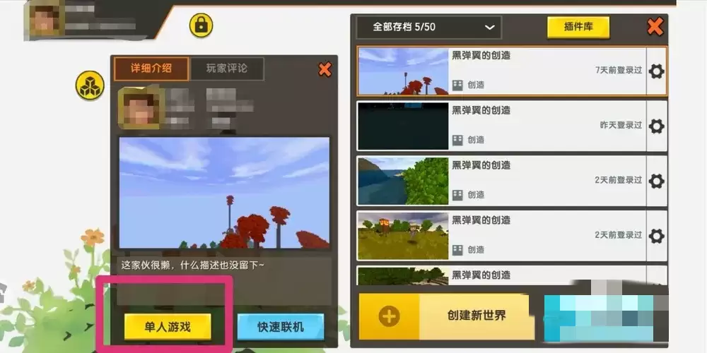 进入游戏选择界面后,你需要决定游戏类型。这里选择“单人游戏”选项,以确保后续修改仅对你自己的存档生效。