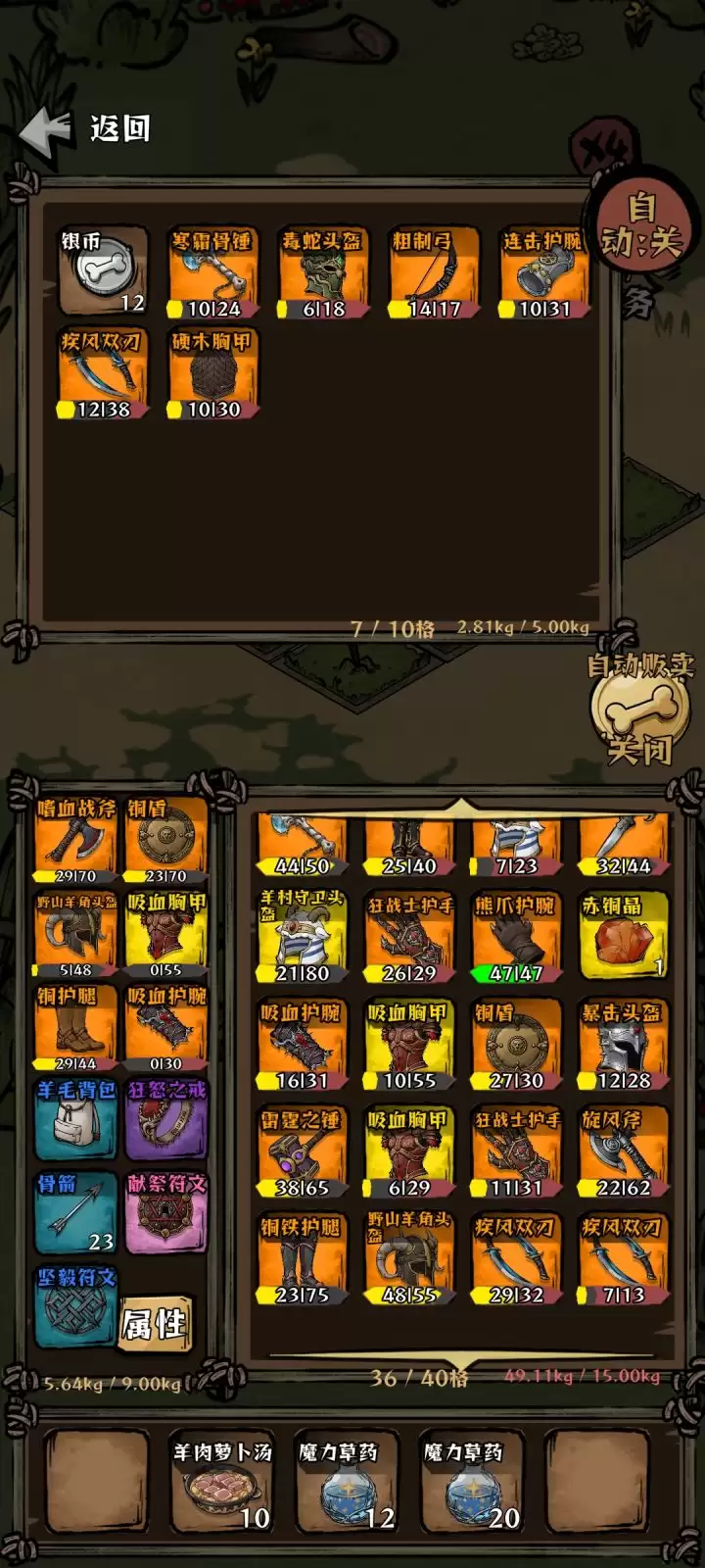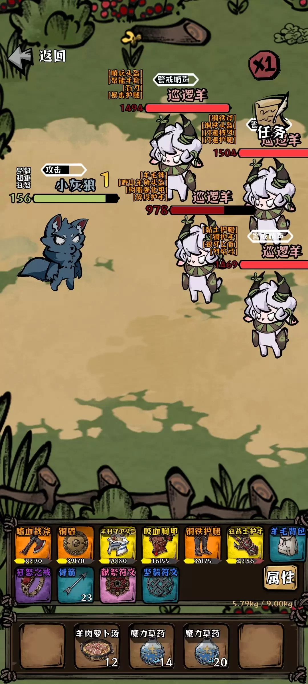 前期流程按主线推进即可。因优先堆叠攻击与暴击,防御通常不会出现缺口。过渡期若有压力,羊肉萝卜汤(+50最大生命,每回合回复1血)与魔力草药(瞬回50血)足够应对。