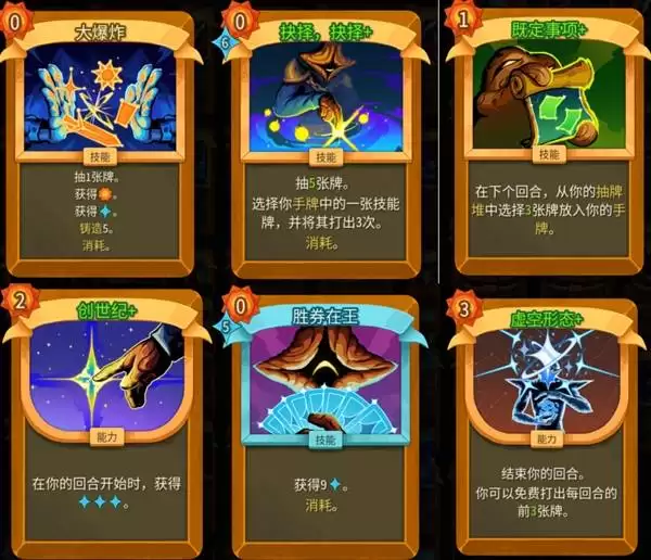 输出端有两个明确方向:选择具备成长潜力的卡牌,或直接采用高基础伤害的卡牌。成长型方案可考虑转独白/转地形改造配合活力加成,搭配任意攻击牌及辐射组件。月面射击、王者之拳这类自带成长属性的卡牌亦是优质选择。高基础伤害的代表则有伽玛爆破、七星、葬送、彗星和王者之踢,它们无需培养即可提供可观输出。