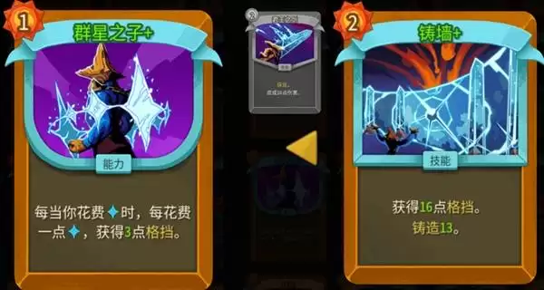 防御端的选择需兼顾体系兼容性。体系成型后群星之子是首选,亦可利用溢出的能量与辉光资源进行防御转化。特别推荐几张攻防一体的多功能卡牌:星灭、倒映、铸墙和共鸣。其中铸墙兼具成长性与优秀的基础数值。此外,转型期的王凝能有效削弱敌人力量,是优质的过渡选择。