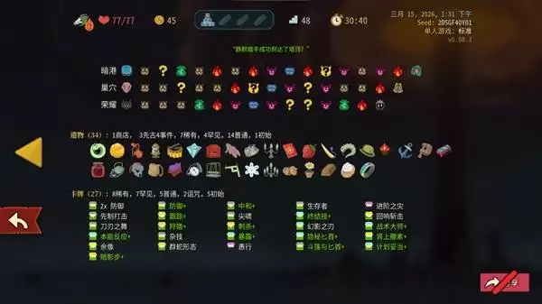该种子提供了堪称“天胡”的起手配置:总计可获得34件遗物。开局阶段,你将直接获得【狩猎战利品】、【转经轮】与【佩尔之翼】这三件核心遗物构成的梦幻组合。请直接使用此代码开启你的对局:2D5GF40Y01。