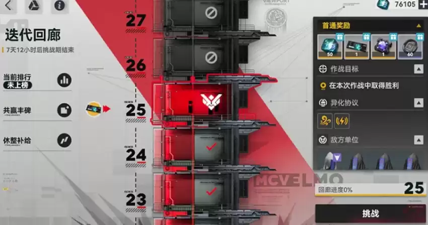 迭代回廊是一个有着无限层数的挑战玩法,指挥官可以从下到上一层一层的挑战关卡,且随着层数的增加,关卡的难度会逐步提升,在玩法开始后将分为14天挑战期和2天结算期,这两阶段来进行。