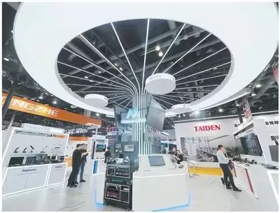在北京国际视听集成设备与技术展览会上,观众在参观AI视频设备。杜建坡摄(人民视觉)