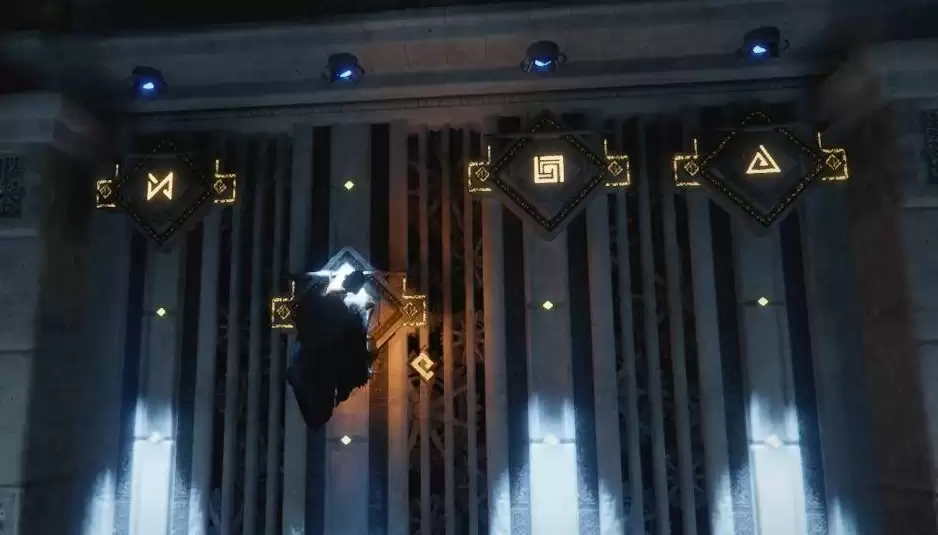 第一步,前往左侧房间。注意观察右侧的门,上面有一个可移动的板块,将其推动至正确位置。完成左侧操作后,前往右侧房间。这里需要你分别推动左右两边的门板,成功操作后,你将获得剩余的三块关键石符。