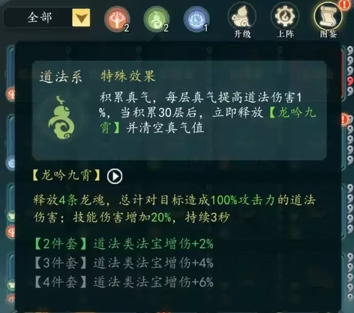 三大体系的差异根植于其独特的被动积累机制。飞剑系法宝每次释放会叠加一层“剑意”,叠满30层后触发剑气,造成范围伤害并附加沉默效果,兼具输出与控制。道法系法宝则积累“真气”,真气满30层后,为下一次攻击提供20%的额外伤害加成,是纯粹的爆发增幅器。绝技系法宝的核心是“印咒”,印咒累积至30层可瞬间回复自身20%气血,提供了强大的生存与续航保障。