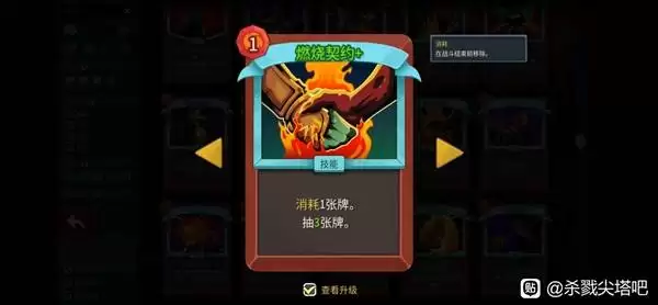 在大量删除基础防御牌的策略下,过渡期的生存需要依赖特定组件。“狂怒”能有效降低战斗损耗,其价值足够高,在依赖升级的前提下,抓取两张亦可接受。“无惧”在拥有“大烧”或烧牌充裕时,是稳定启动的关键保障,值得入手。至于“坚毅”,其泛用性与强度已得到广泛验证。