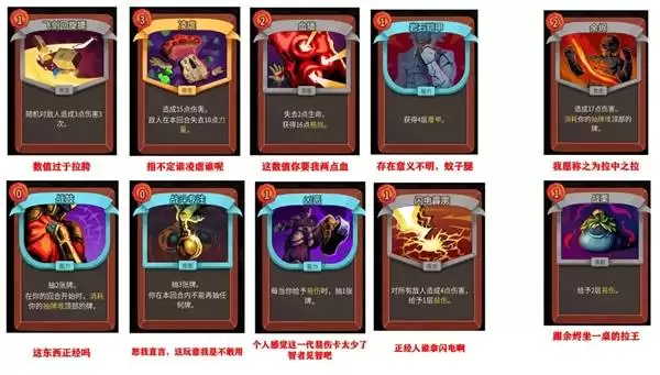 这些卡牌在当前版本中性价比偏低。问题可能在于费用与效果不匹配、负面效果过大,或存在更高效的上位替代。除非构建特定娱乐套路,否则通常不建议占用牌组位置,以免稀释核心抽牌概率。