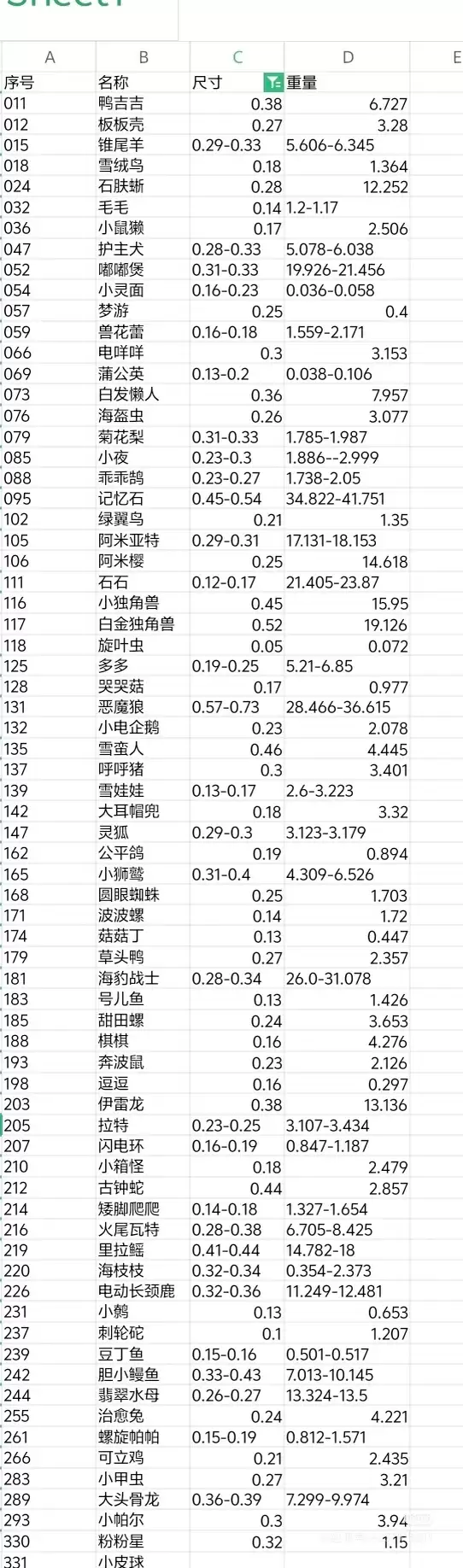 话不多说,直接上图。这张图表汇总了主流精灵蛋的规格数据,从直径、高度到预估重量,都列得清清楚楚。对照着看,你手里那颗圆滚滚的宝贝究竟对应哪只精灵,基本上就心中有数了。