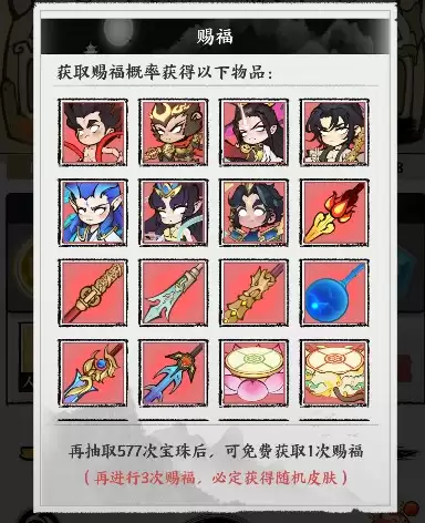 当累计抽取达到特定次数,将触发“赐福”事件,固定获得随机高品质神兵、坐骑或皮肤。累计触发3次“赐福”后,还将额外获得一件随机高品质皮肤,进一步提升了抽取的长期价值。