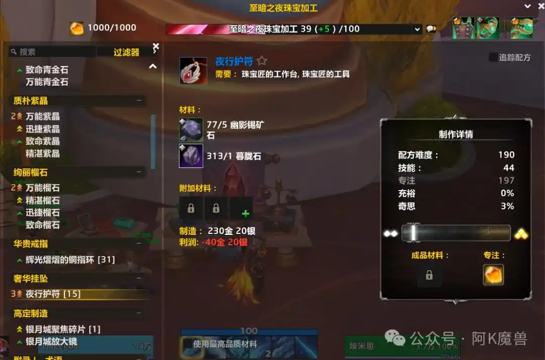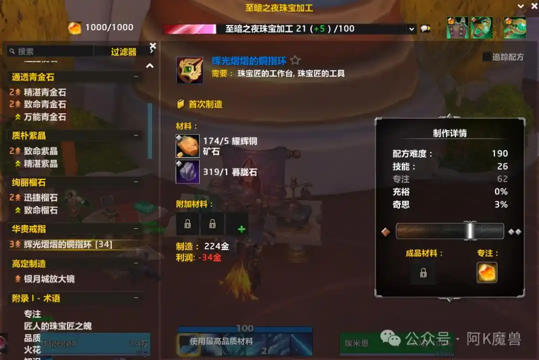 选择专注于制作各类宝石,意味着你要开始搜集配方了。图纸要么通过刷特定怪物和副本获得,要么就去拍卖行看看有没有其他玩家出售。这需要一定的资金或时间投入,但成型后前景广阔,毕竟宝石永远是市场上的硬通货。