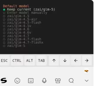 模型选择环节建议直接使用默认的最新版GLM5。除非有特殊需求,否则最新版本通常具备最优的性能和兼容性。