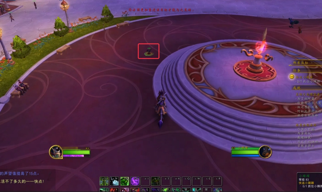 接下来就是重头戏了。小蹿蹿的活动范围就在坐标 42,62 附近,它会灵活地穿梭在街道和广场之间。追的时候不用太着急,保持稳定节奏跟着跑就行,反正它总会在固定路线绕圈。