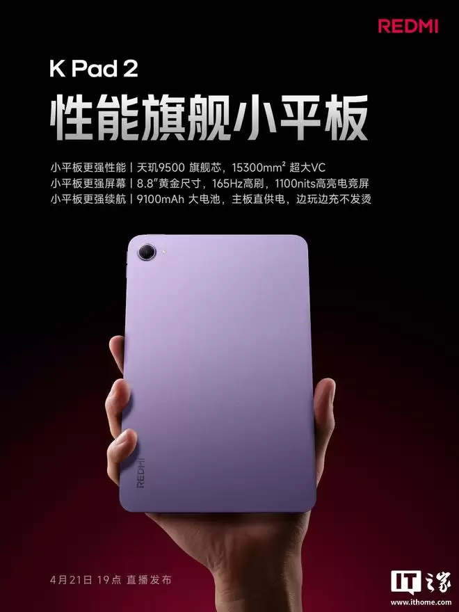 4月21日晚7点,Redmi K Pad 2 将正式揭晓。其搭载的天玑9500旗舰平台,以及对多款主流射击手游原生165帧率的底层支持,直接定义了其专业级电竞平板的身份。