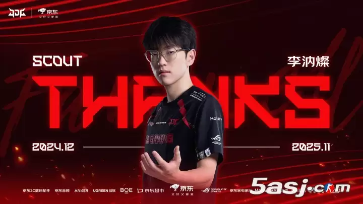 JDG俱乐部衷心感谢Scout选手在效力期间的全情投入与卓越贡献,也感谢所有粉丝一直以来的支持。聚散有时,情谊长存。我们诚挚祝愿Scout选手在未来的职业道路上取得更大成就,期待在赛场的巅峰再次相遇。