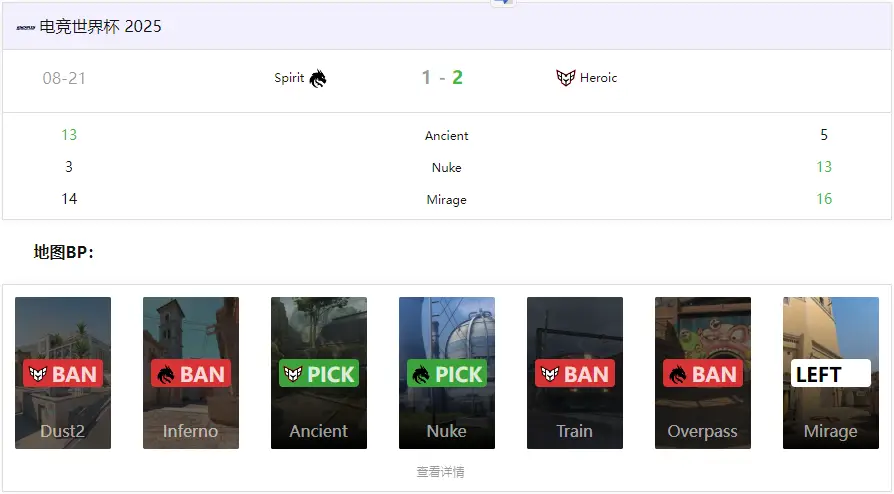 电竞世界杯CS项目甫一开赛,便见证了足以载入史册的爆冷对局。刚刚在科隆捧杯的Spirit战队,首轮即被HEROIC以2-1的比分斩落马下,上演“冠军一轮游”。系列赛进程跌宕起伏,前两图双方各取一场碾压胜利,将所有的压力与悬念留给了决胜图米拉吉。双方在常规时间战平,并一路厮杀至加时赛。最终,HEROIC凭借加时阶段更胜一筹的团队协同与补枪效率,以16-14锁定胜局,将本届赛事的头号夺冠热门提前送回家。