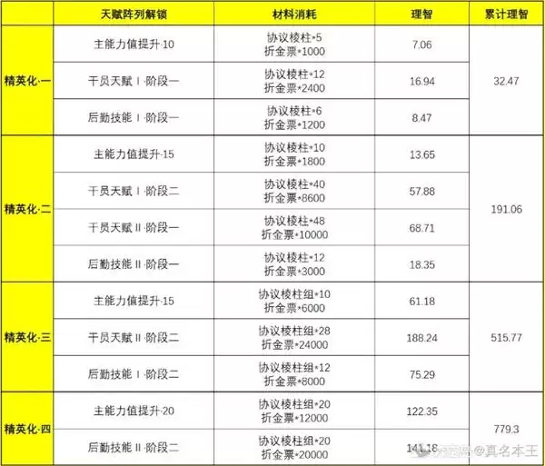 以下是进阶各阶段大致的理智消耗参考,可以看到,越往后投入是指数级增长的。