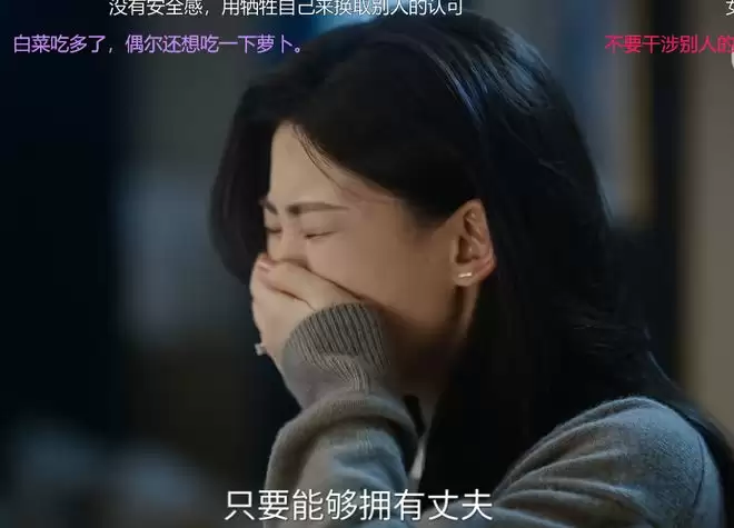 脱离职场后,她的价值感来源变得单一且脆弱,高度依赖于家庭内部——尤其是丈夫予诚——的肯定。相比之下,职场能提供一个相对清晰、客观的价值评估体系:专业能力是获得认可的直接标准。即便以她的性格,进入职场后可能仍会习惯性讨好家人,但至少能建立一个独立于家庭关系之外的自我支撑点。