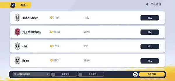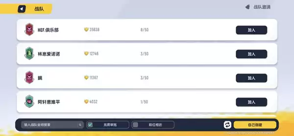 进入战队页面后,系统会智能推荐一些可能适合你的战队。不过我个人建议,别完全依赖推荐——右上角有个搜索框特别好用,你可以直接输入心仪战队的名字或编号精准查找。这就好比去超市买东西,与其漫无目的闲逛,不如直奔目标货架。