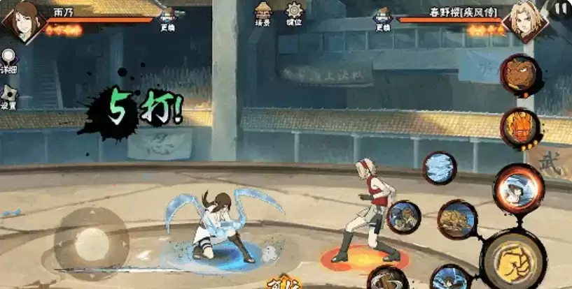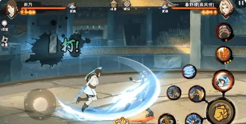 奥义技“砂阵连击”将砂隐村特色战术配合演绎得淋漓尽致:雨乃瞬间同步召唤志志雄与光司共同入场,志志雄立即施加群体隐身效果,使雨乃与光司进入不可见状态;随后三人发动协同突进,对敌方目标实施多段连续打击;终结阶段雨乃率先解除隐身,以水螳螂形态完成强力斩击,这套连招不仅视觉效果震撼,更具备极高爆发伤害,往往能决定战局走向。
