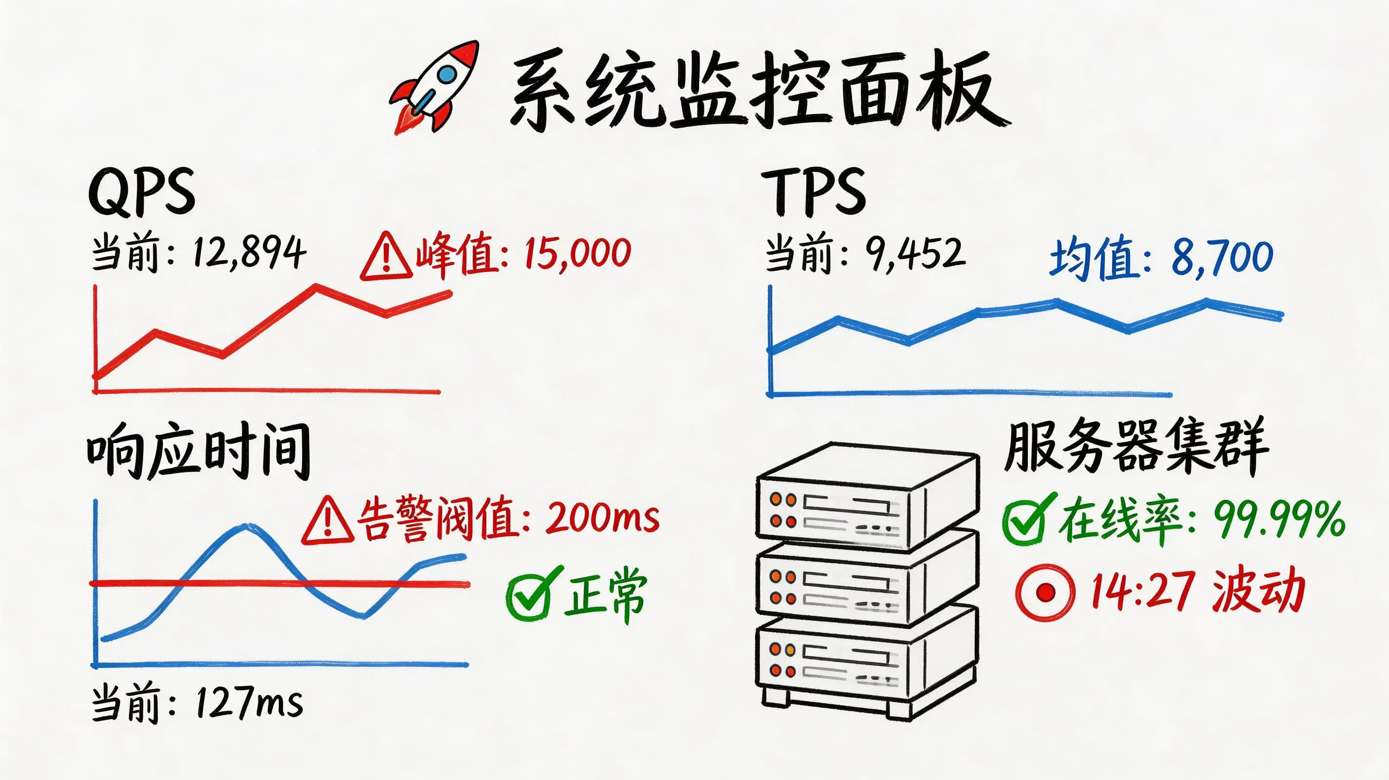 其次是响应时间,尤其是P99(99%分位响应时间)。平均响应时间易受极值影响,而P99能真实反映绝大多数用户的体验。在高并发下,P99响应时间必须保持稳定且处于可接受范围(通常为毫秒或秒级),这是保障业务流畅度的硬性指标。