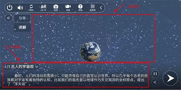 点击之后,就正式进入AR学习的主界面了。你会看到一个充满交互元素的立体学习空间,大致布局如下图所示。