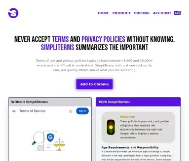 它精准解决了现代网络用户的效率痛点。无论是注册新服务时面对Google庞大的条款体系,还是各类平台中隐藏的数据处理细则,SimpliTerms都能快速解析,为你提炼出关乎隐私与权益的精华内容,将知情权和时间一并交还给你。