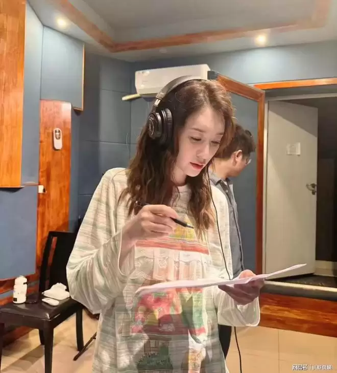 配图中,李小冉展示了其在录音棚的工作状态。她身着休闲装,佩戴专业监听耳机,手持标注详细的歌词稿进行审阅。画面捕捉到她用笔在稿纸上进行标记的瞬间,清晰传递出其对待公演曲目准备的严谨态度与专业投入。这组照片直接回应了传闻,表明她正为后续舞台进行高强度排练。