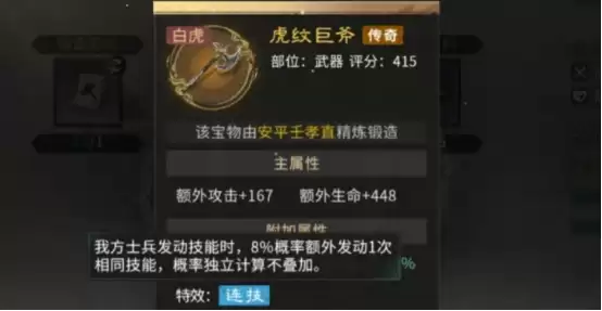 游戏里的宝物系统设计得相当有讲究。不同宝物提供的效果天差地别,关键在于根据武将特性来搭配。主打输出的武将,就优先配输出向的宝物套装;辅助型武将,则更适合能给队伍带来各种增益的套装。每个部位的宝物,都带有独特的固定属性和随机的附加特效。以核心的武器部位为例,“进攻”和“追袭”这类特效,绝对是追求极致伤害的玩家们的首选。
