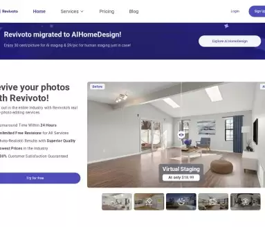 Revivoto采用按服务项目定价的灵活模式。例如,其高级虚拟置景服务起价约为$9.99(常伴有推广折扣),而基础的照片增强服务单价可低至$0.95。这种定价策略在确保专业编辑质量的前提下,提供了极高的性价比,使其成为从个人到企业级用户均可负担的实用工具。