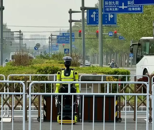 从远处观察,“天轶”的站姿与手势规范利落,与人类交警协同作业。靠近细看,其流畅的肢体动作与极具科技感的工业设计,则清晰揭示了其机器人身份。这一场景为亦庄的清晨注入了鲜明的未来城市元素。