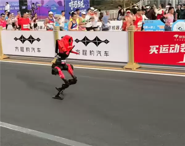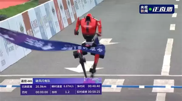 最终,来自荣耀齐天大圣队的“闪电”机器人以50分26秒的净成绩率先冲线,赢得冠军。这一成绩大幅超越了人类半程马拉松56分42秒的世界纪录,标志着机器人运动能力与动态稳定性达到了新的里程碑。