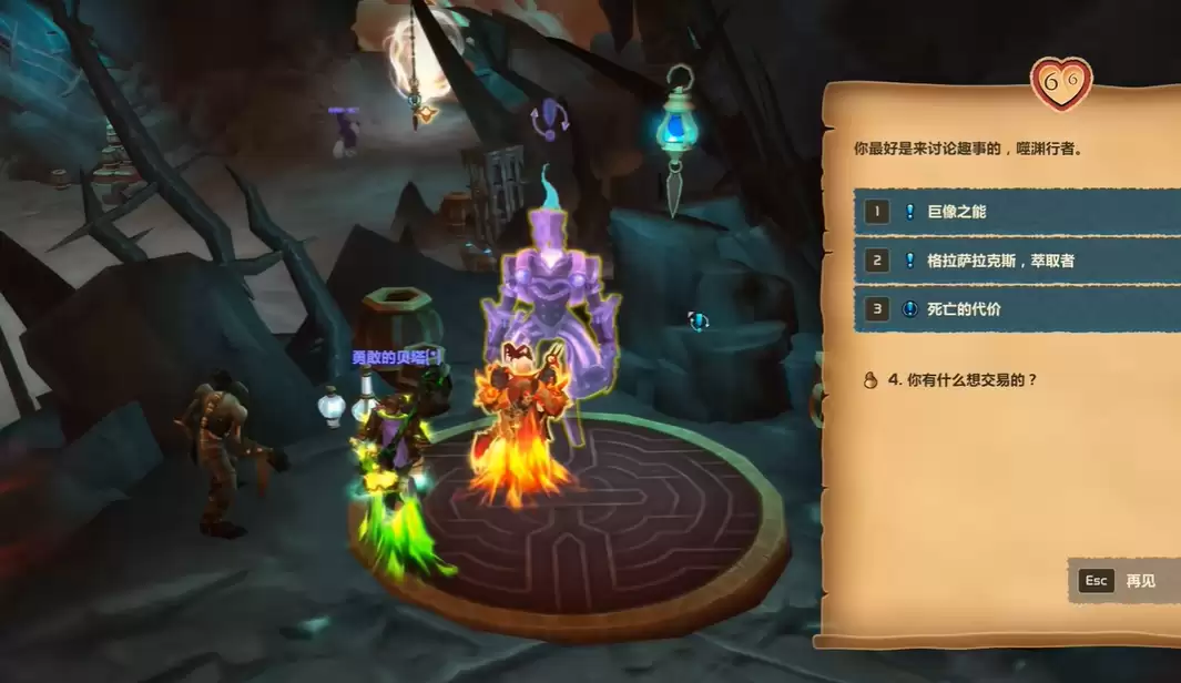 声望达标后,别忘了在她那里采购三样关键道具:冥殇占卜器(需要1500冥殇)、活化的漂浮锁链以及不完整的符文典籍。这几样东西后续每一步都会用到。