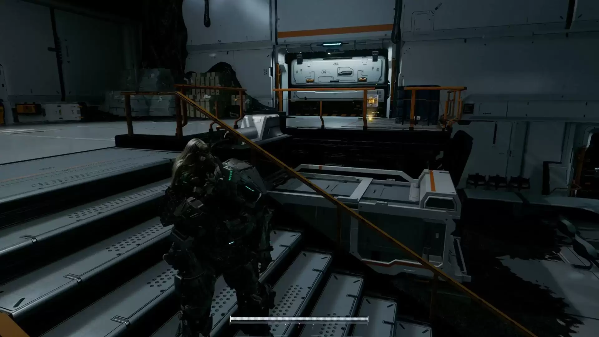 通过实验室主入口的舱门后,向右走,越过蓝色管道,找到通往外部的路径。右转并走下楼梯。组件就在楼梯的尽头等着你。