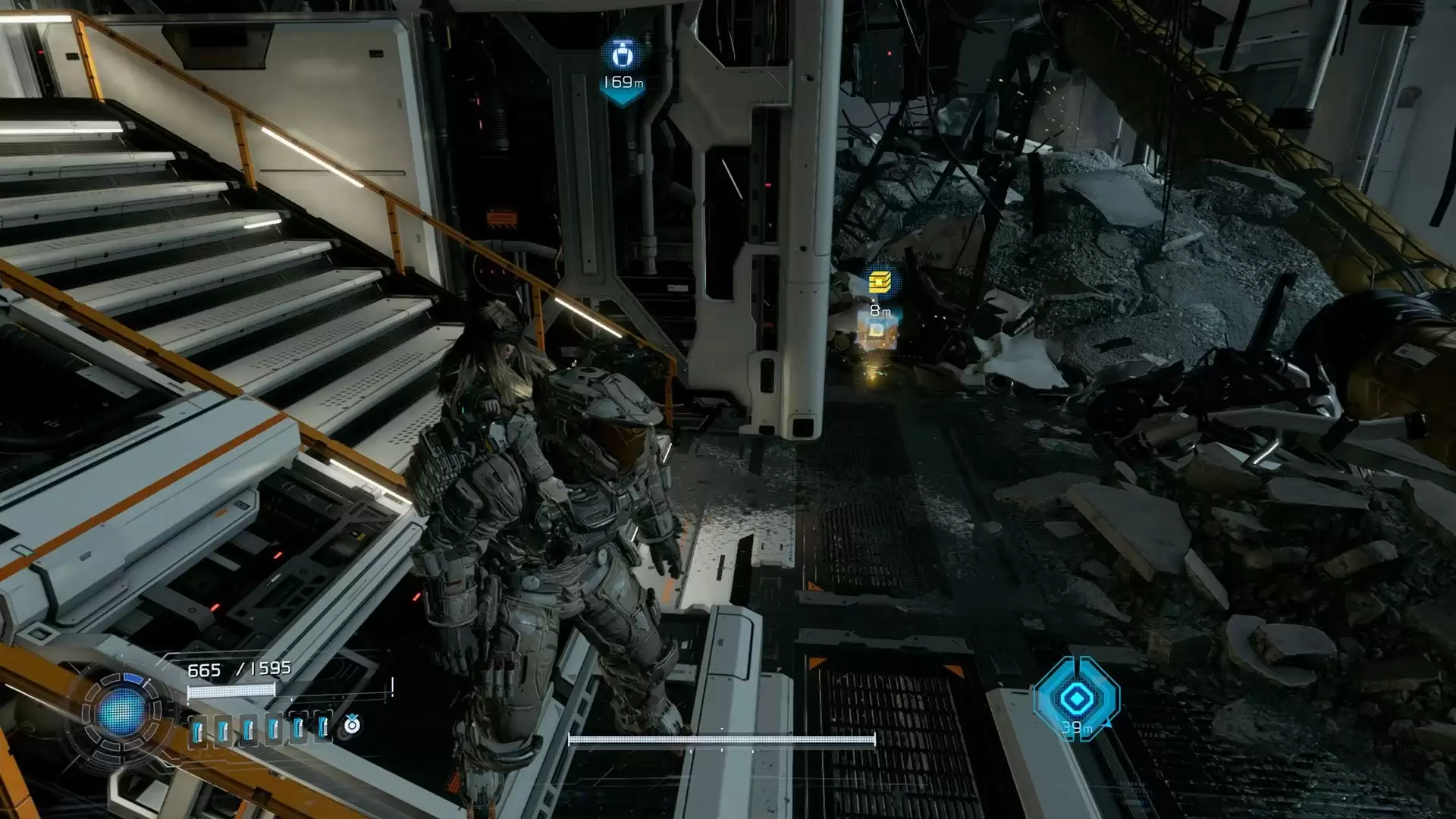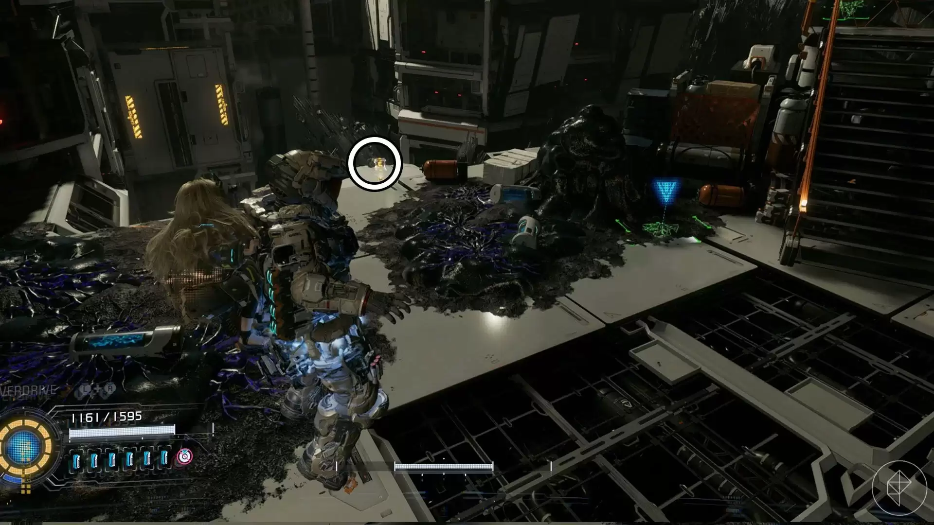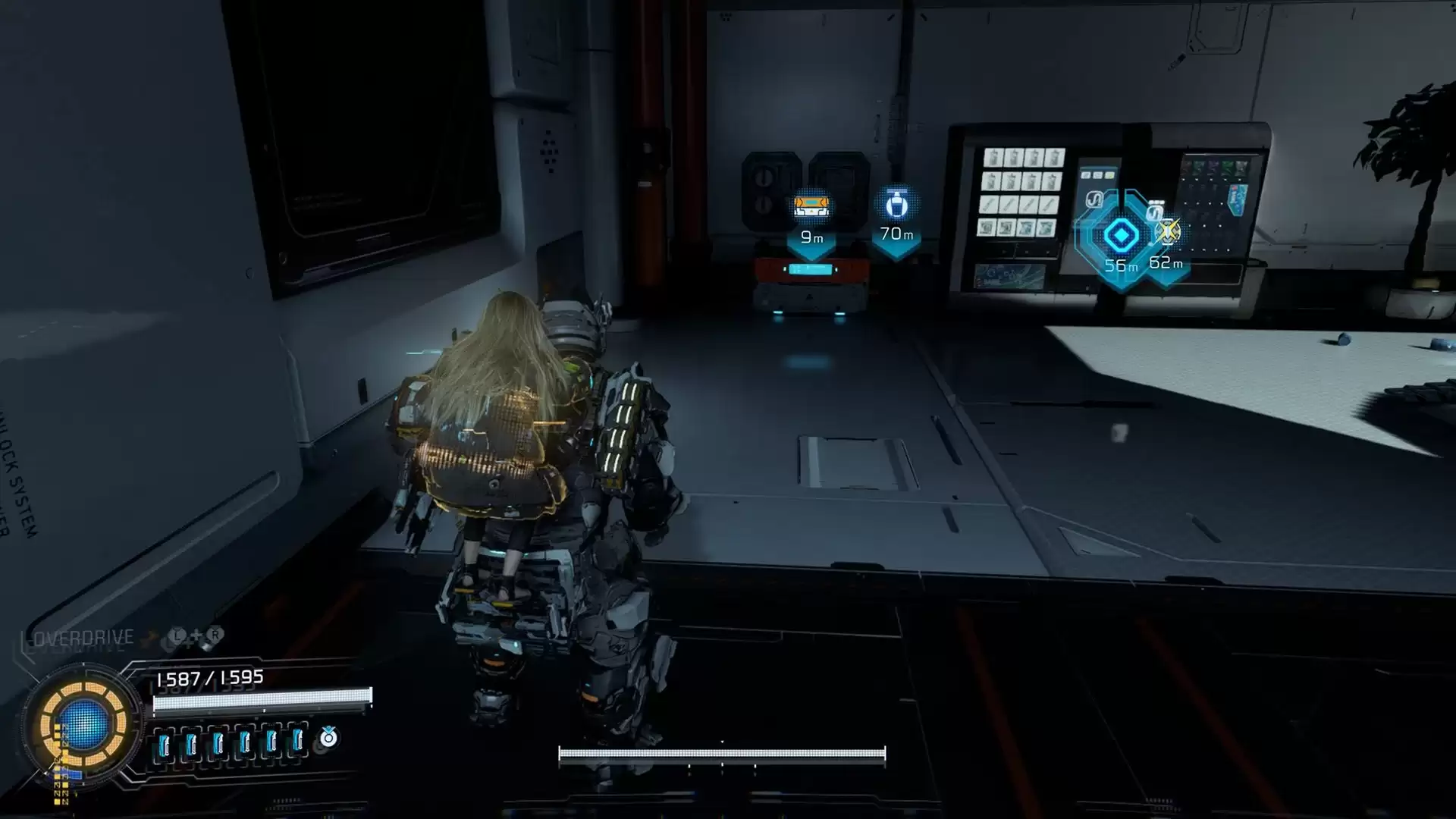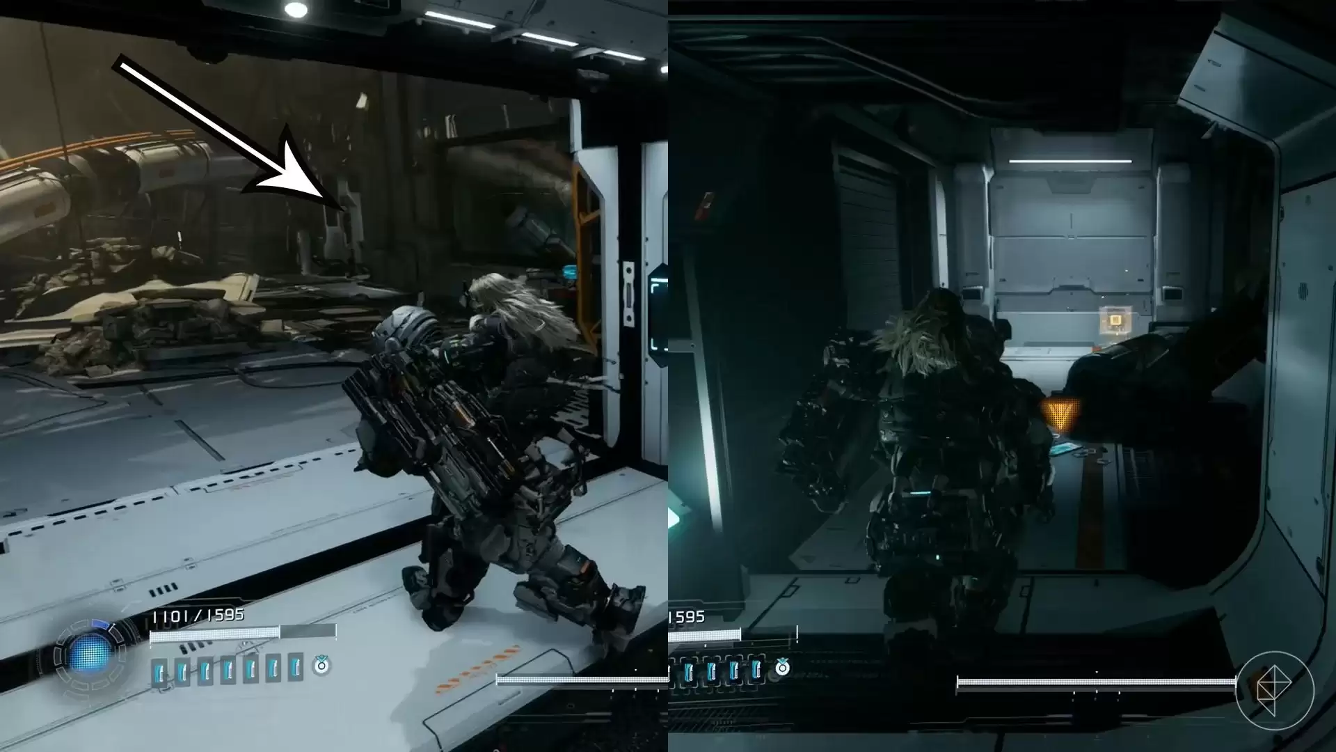 从货运站传送点出来,顺着楼梯往下走。在一个平台上,你就能发现第一个升级组件。