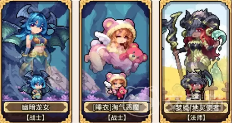 这套体系的运转,离不开三位固定成员:幽暗龙女(前排战士)、淘气恶魔(中排战士)和地灵使者(后排法师)。他们各司其职,形成了一个坚固的铁三角。