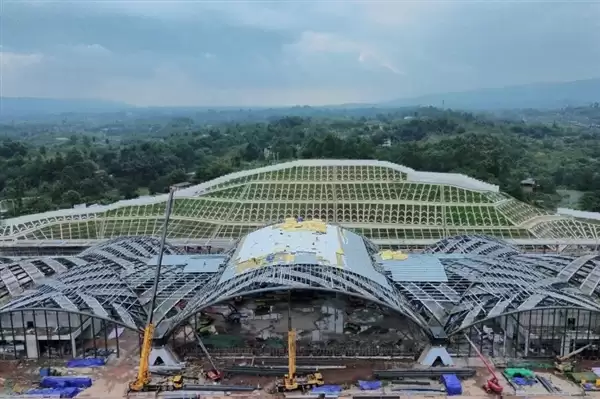 文化底蕴深厚的大足石刻站,其钢结构主体工程已全部完工,包括候车厅钢网架屋盖和进站厅钢框架屋盖。施工方运用了整体顶升、同步控制与高空拼装等先进工艺,确保了大型钢结构施工的安全、精准与高效。