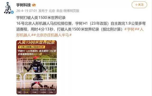 事实上,就在赛事当天早些时候,宇树科技官方通报了该机器人的一项突破性表现:在16日的排位赛中,经过2024年改版的H1机器人自主完成了1.9公里多弯道复杂路径,耗时仅4分13秒。按比例折算,其移动速度已超越人类1500米世界纪录水平。这一性能数据与赛场突发状况的并置,精准揭示了人形机器人技术研发的双重现实:实验室环境下的算法突破与真实场景中的鲁棒性考验,往往共同定义着技术的成熟度曲线。